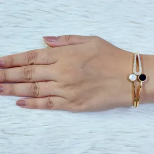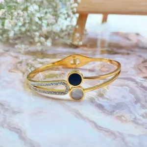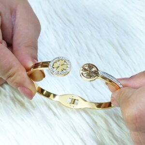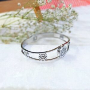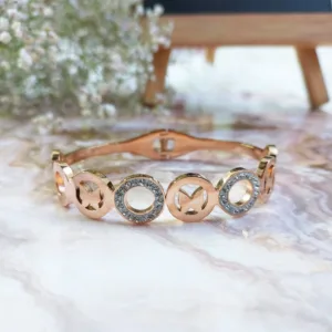 A bracelet is an article of jewellery that is worn around the wrist. Bracelets may serve different uses, such as being worn as an ornament. When worn as ornaments, bracelets may have a supportive function to hold other items of decoration, such as charms.