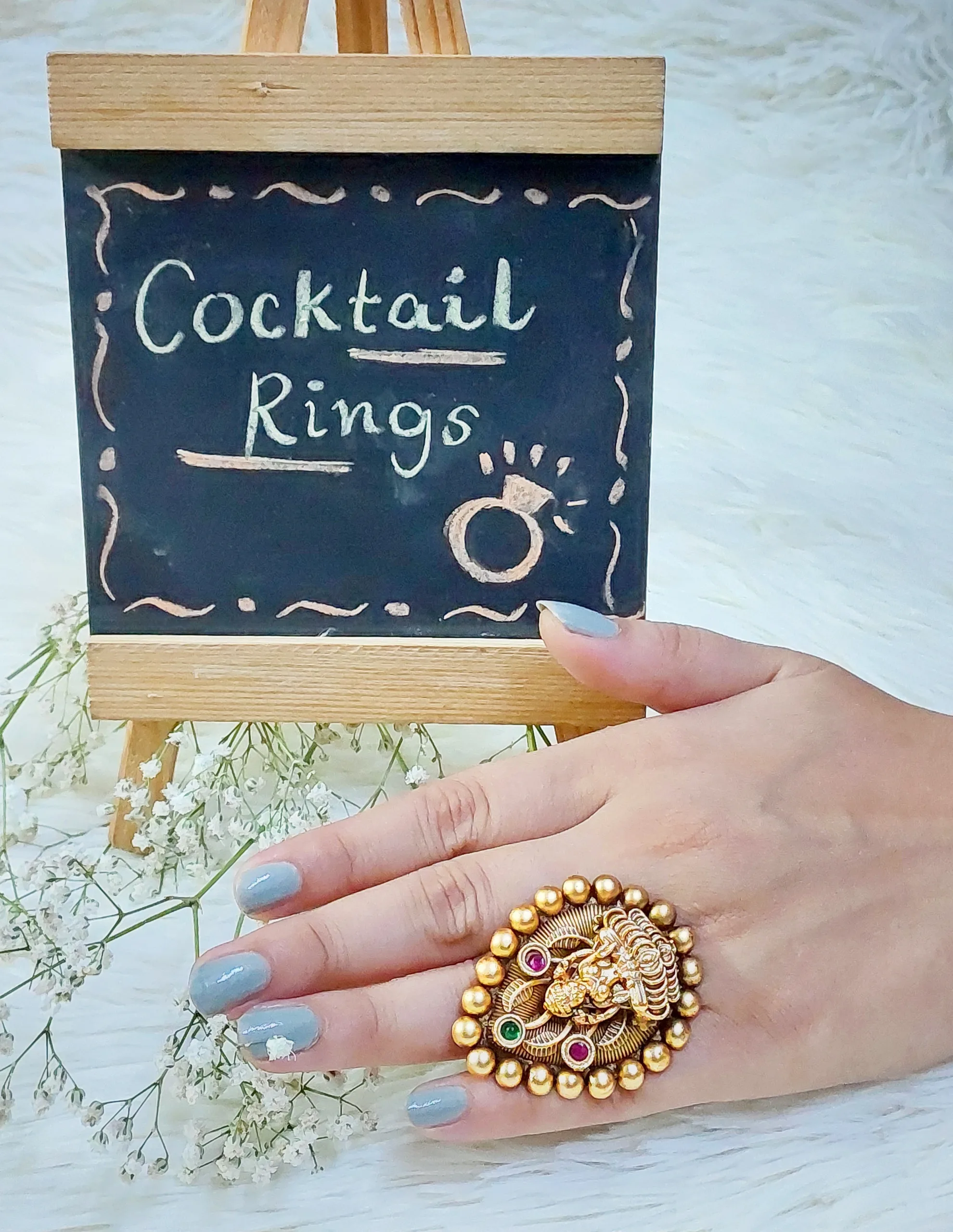 A beautiful yet devotional Golden Cocktail Ring designed to mark an influential touch and sense of Spirituality.