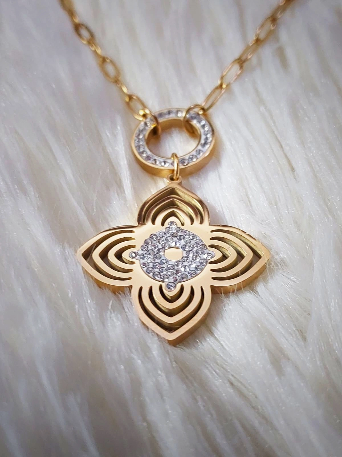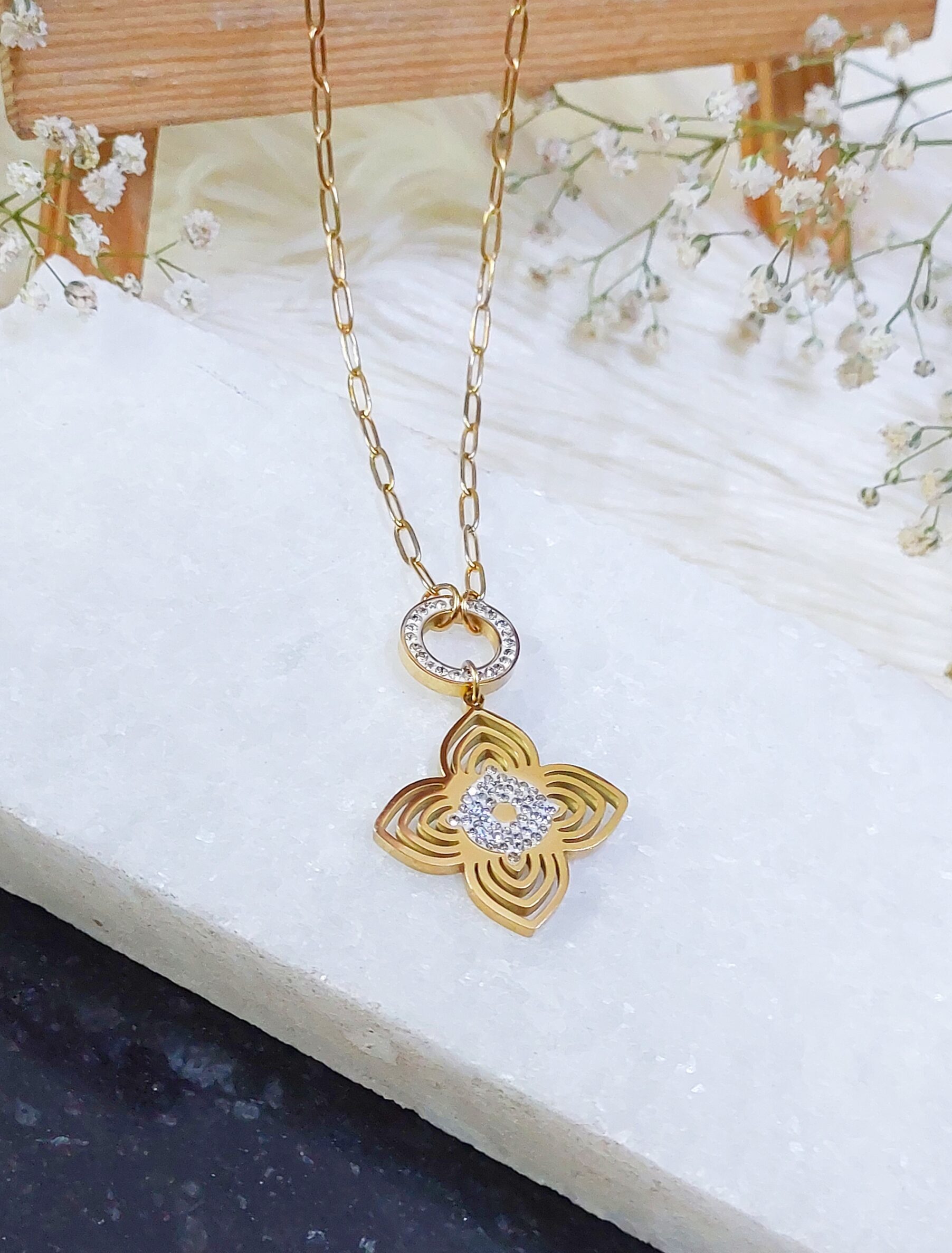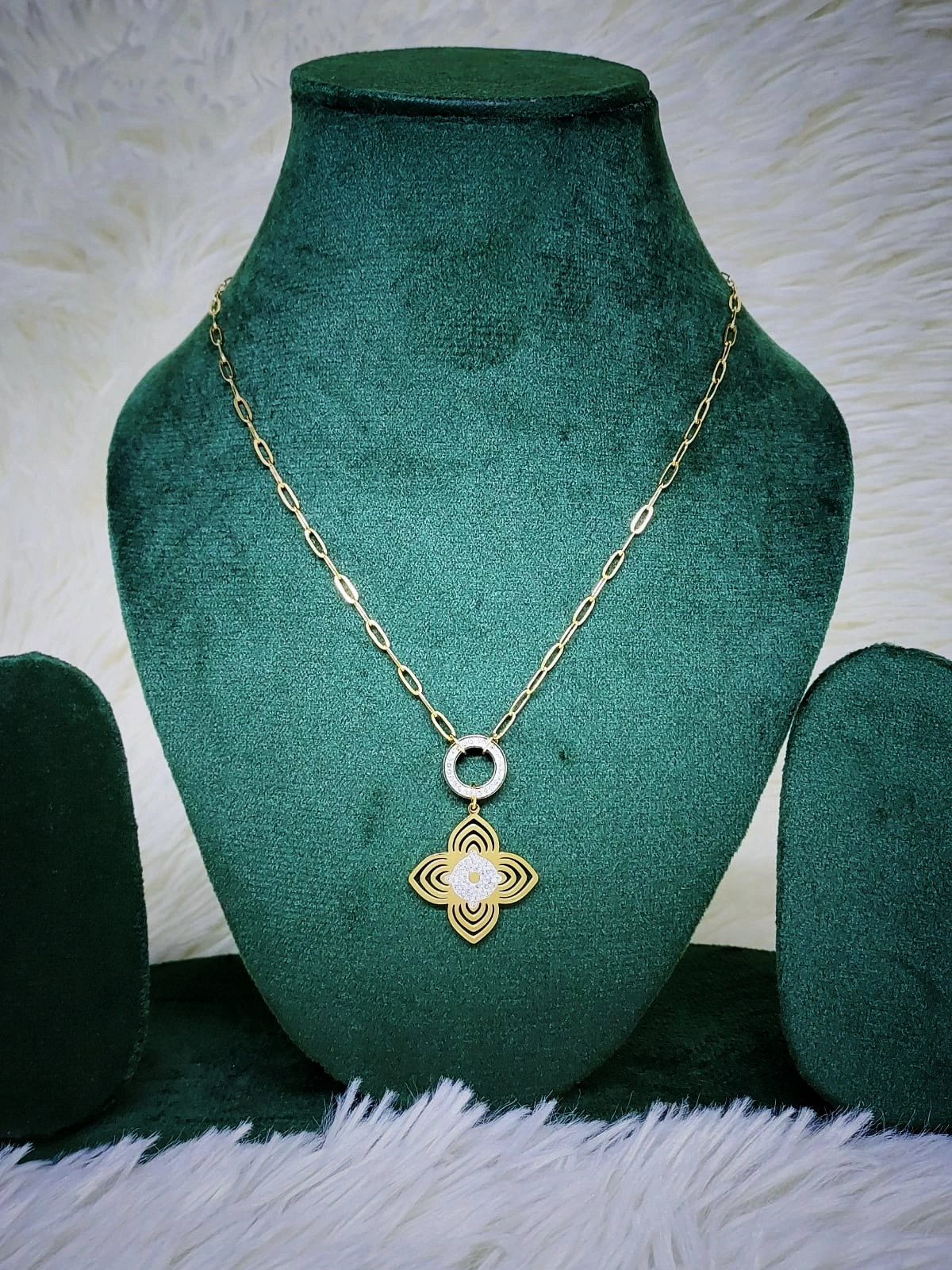 Golden insulated Rhodium polished Pendant with Golden chain looks classy on every outfit.