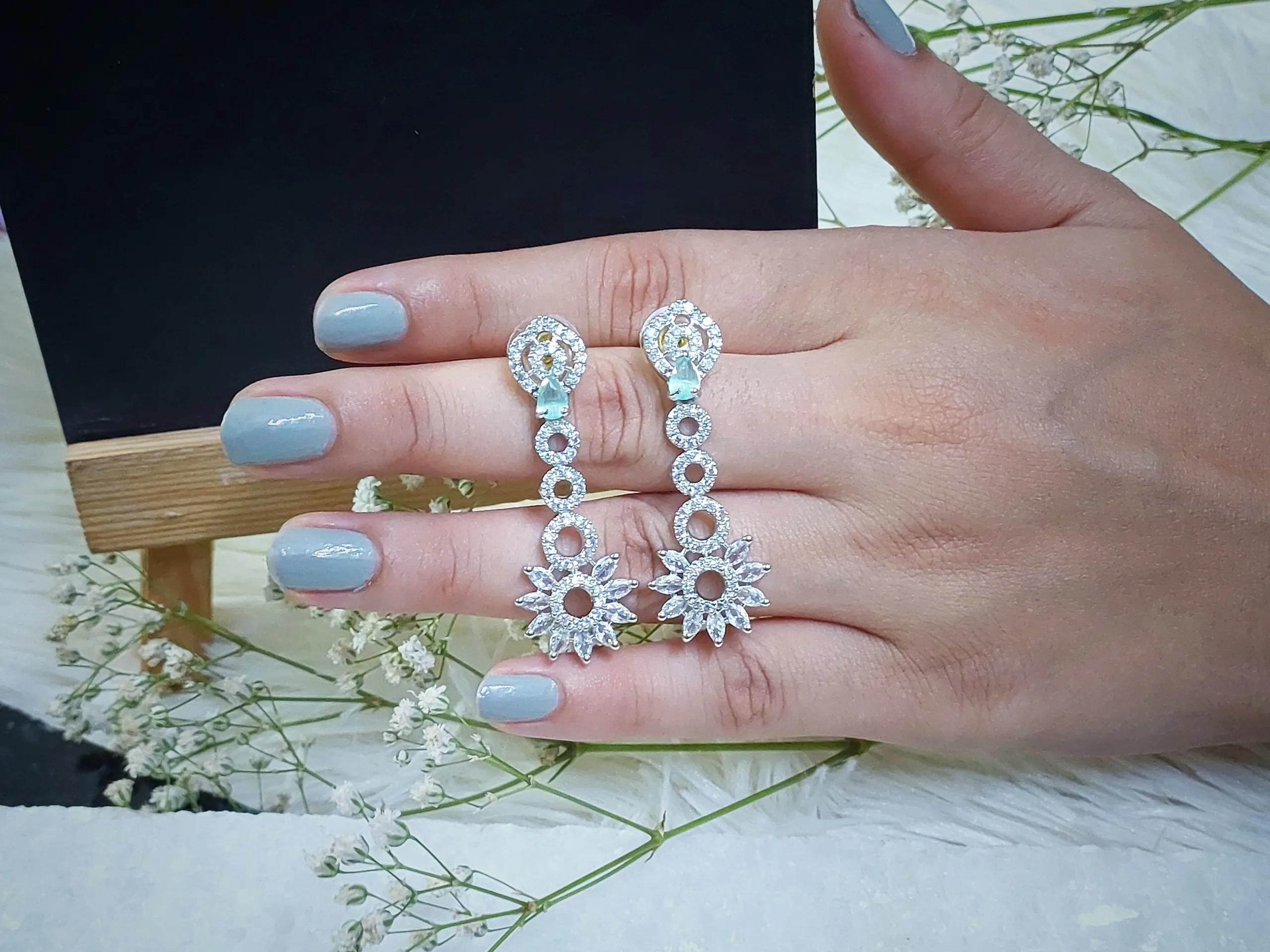 American diamond earrings, also known as cubic zircon earrings, are popular jewellery pieces that mimic the appearance of real diamonds. They are crafted using cubic zircon, a synthetic gemstone that closely resembles the brilliance and sparkle of diamonds.