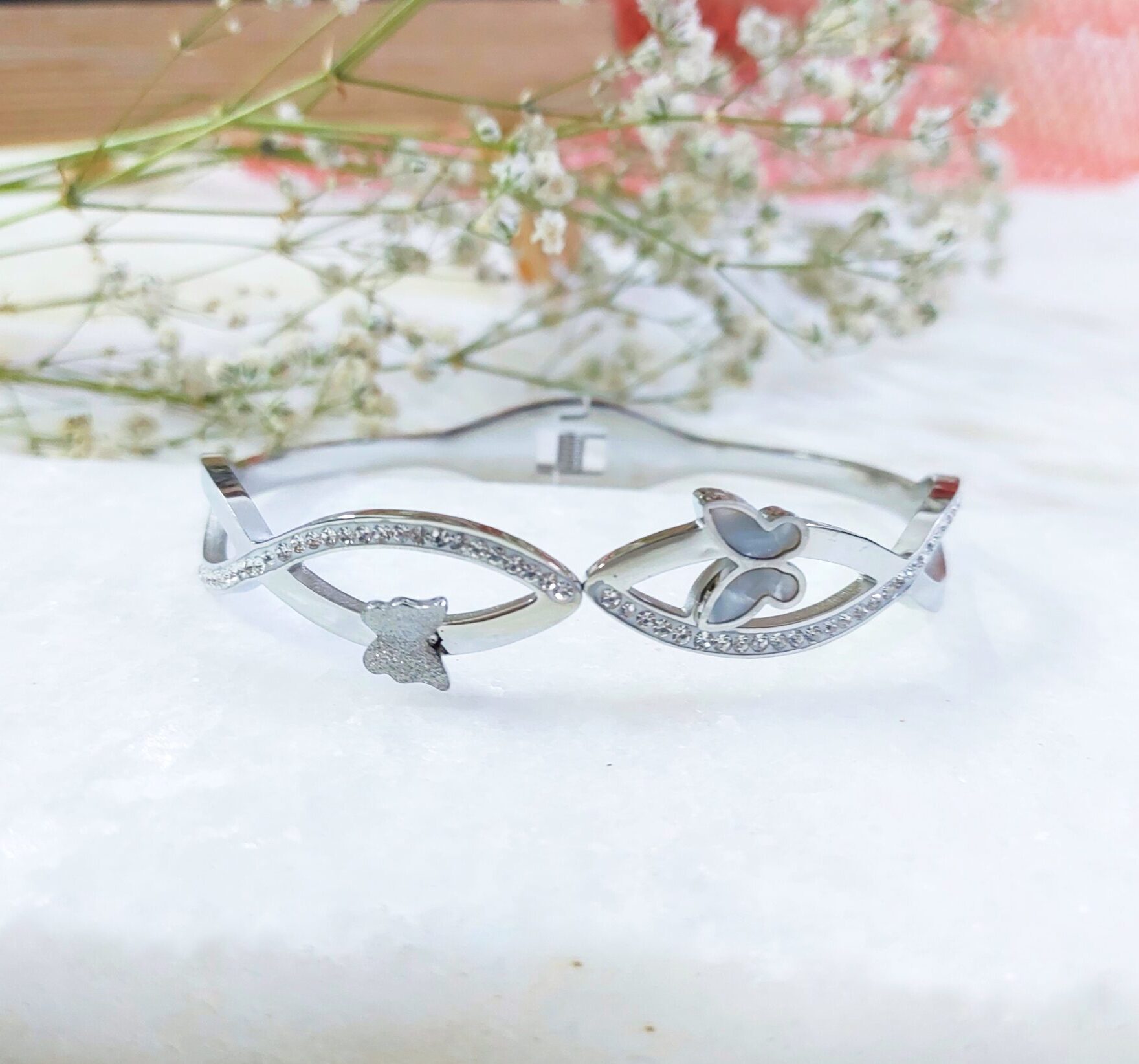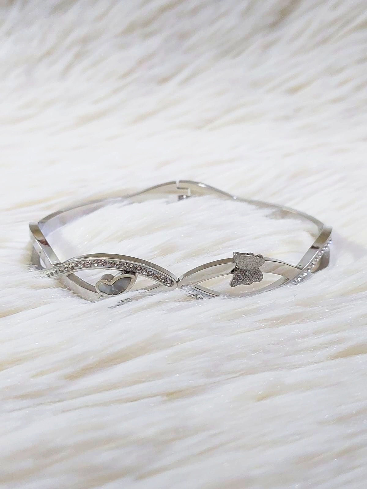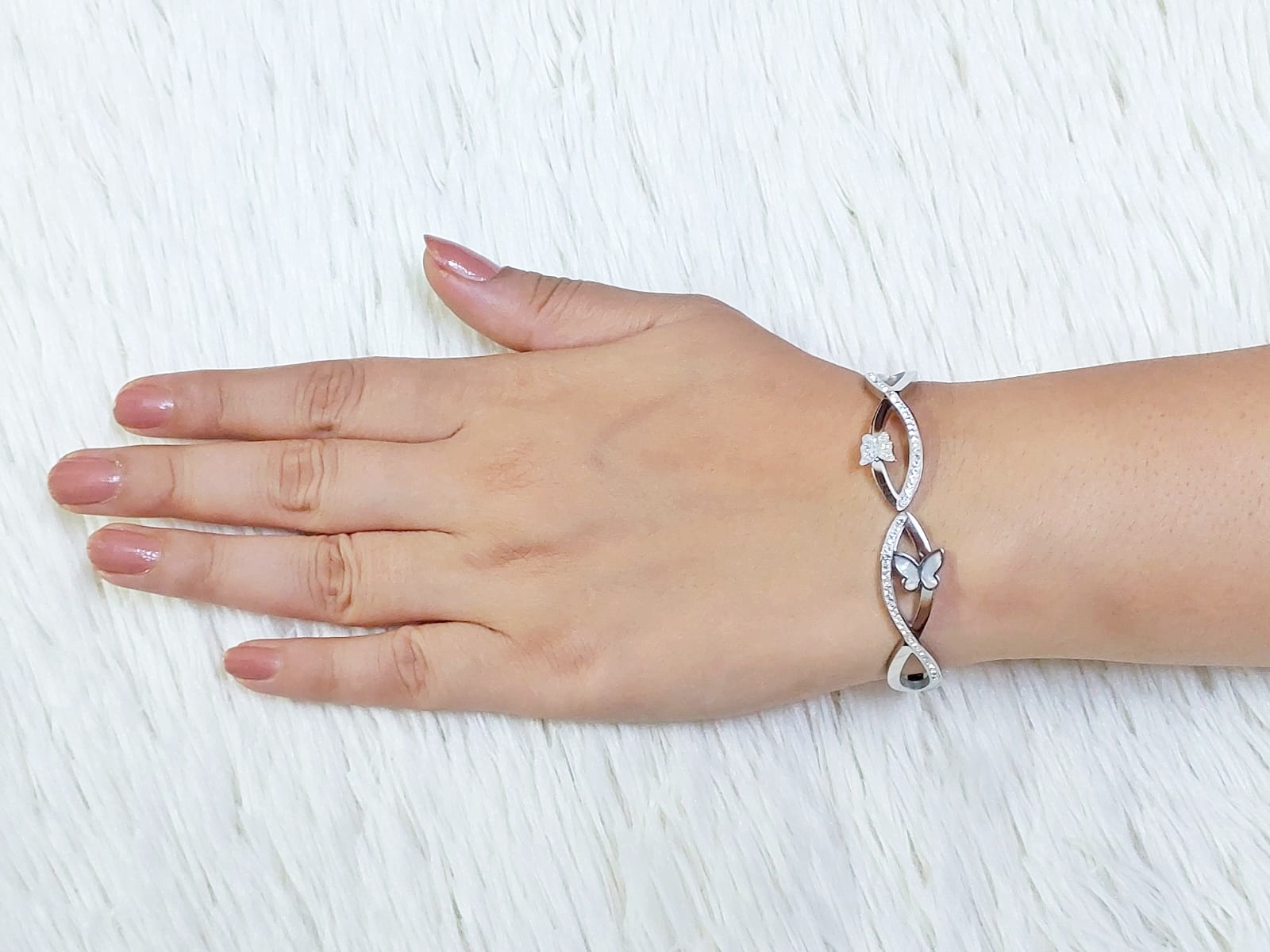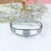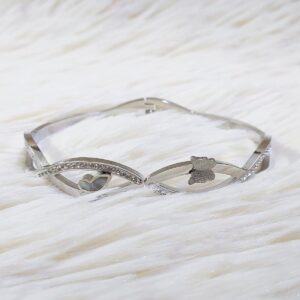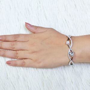 Rhodium-Plated Bangle Bracelet: A rhodium-plated bangle bracelet provides a clean and polished appearance. It can be a simple, solid design or incorporate embellishments like crystals, gemstones, or enamel accents.
